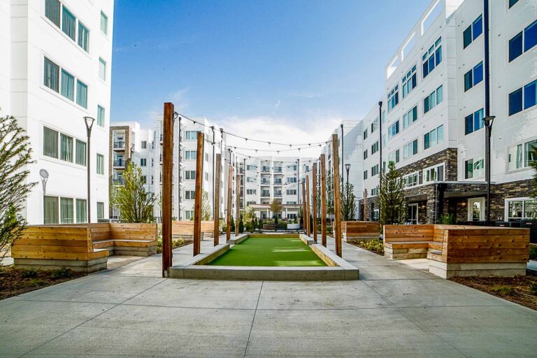 H. J. Russell & Company provided construction services for this four-story, 40-foot-tall residential development, carefully coordinating building systems, accessibility features, and site logistics to meet the needs of a senior population.